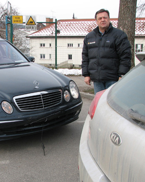 ... njegov avto, ki ga slovenska javnost zelo dobro pozna iz videoposnetka prehitre vožnje po avtocesti med Koprom in Ljubljano, pa je tokrat ostal tudi brez prometne tablice.