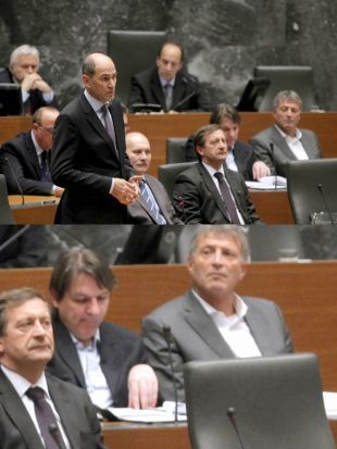 Tudi odhajajoči minister za finance Janez Šušteršič je na ponedeljkovi seji državnega zbora deloval precej zgrudeno. Obe fotografiji sta dovolj zgovorni sami po sebi ...