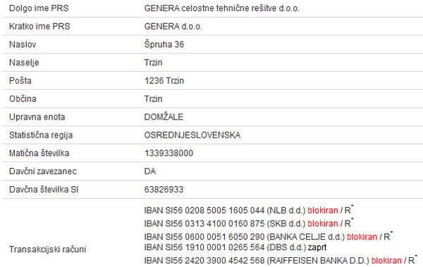 Vsi transakcijski računi podjetja Genera d.o.o., ki ga vodi Urban Jan, skriti kandidat Pozitivne Slovenije za novega ministra za infrastrukturo in prostor, so trenutno blokirani.