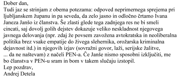 Elektronsko sporočilo Andreja Detele, poslano 15. marca ob 18.25.