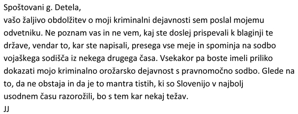 ... ki mu je pisno napovedal tožbo zaradi žaljivih obdolžitev.