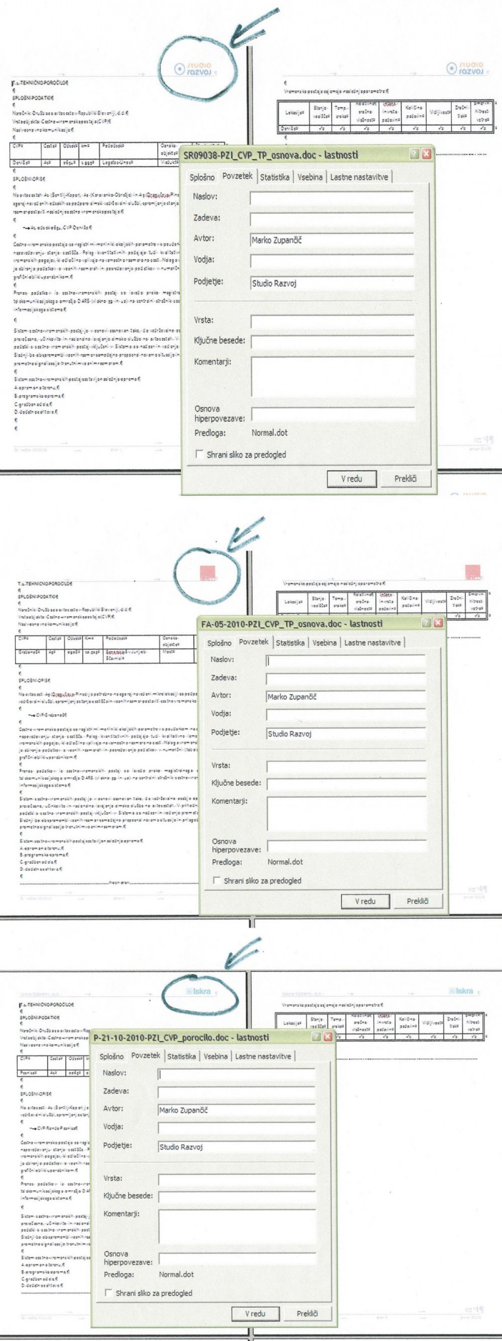 Ta del objavljene dokumentacije dokazuje, kako je projekte treh različnih podjetij, ki so prispeli na Dars, pripravil en in isti projektant - Marko Zupančič iz Novega mesta. Kjer je tudi sedež podjetja Lastinski, njegov lastnik, sedanji minister Samo Omerzel, pa je potem tudi dobil ta posel (za povečavo klikni na sliko.