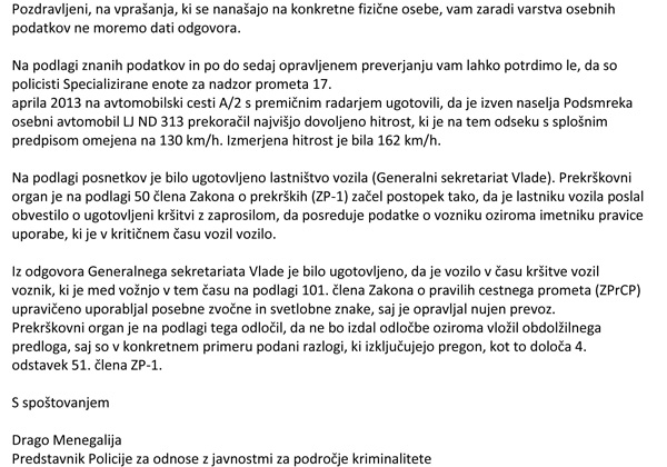 ... iz sporočila generalne policijske uprave pa je razvidno, da je tudi tokrat (zaradi prehitre vožnje ter uporabe modrih luči) ministra Omerzela ali njegovega šoferja rešila vlada.