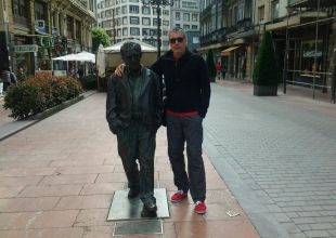 Bronasti kip Woodyja Allena na promenadi sredi Ovieda in moja malenkost.