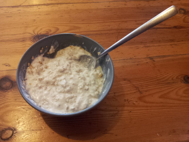 Zajtrk na pogorju Montes de León: skodelica müslija z naravnim jogurtom.
