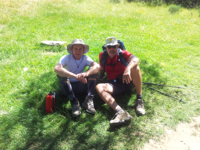 Adriano Stulin in moja malenkost med počitkom na poti v Ponferrado.