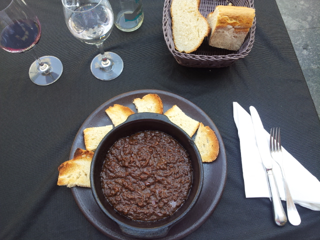 Nekaj za sladokusce. Morcilla da Astorga, lokalna specialiteta mesteca Astorga: domača klobasa kot zmleto meso. Ko postrežejo, se jed še vedno cvre. Odlično!