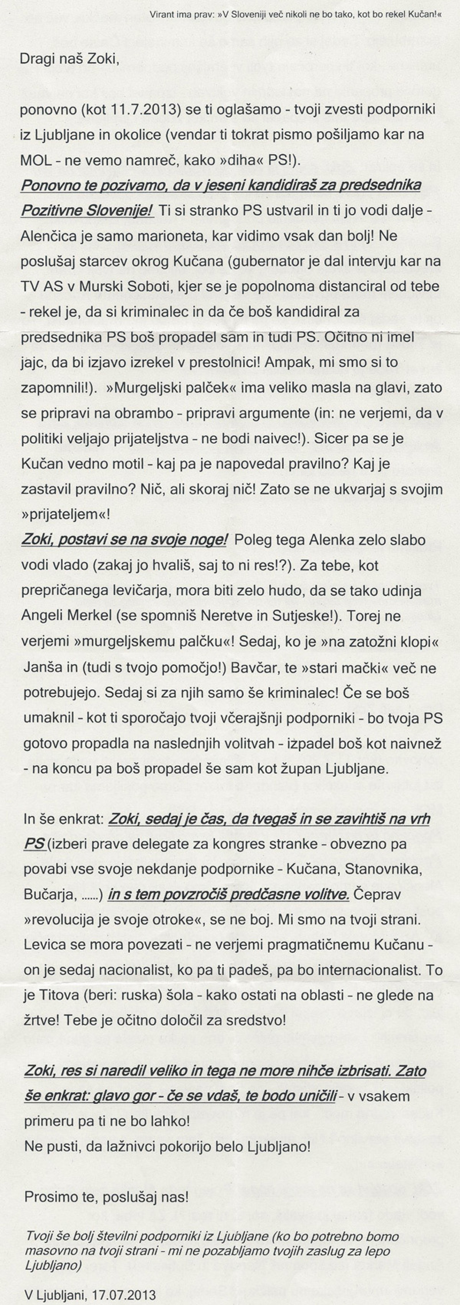 ... drugo anonimko, ki se sklicuje na prvo, da dan potem, 16. julija, ko je bil intervju predvajan.