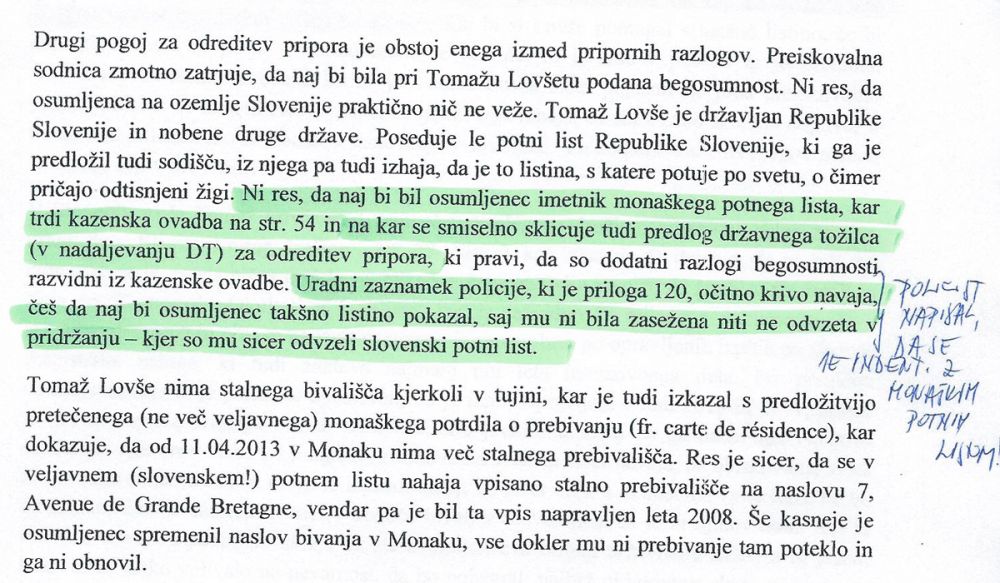 Policija je v kazenski ovadbi zmotno zapisala, da se je Lovše ob začetku hišne preiskave identificiral z monaškim postnim listom, ki ga Tomaž Lovše dejansko sploh nima. Potem pa so mu policisti zasegli samo slovenski potni list ...